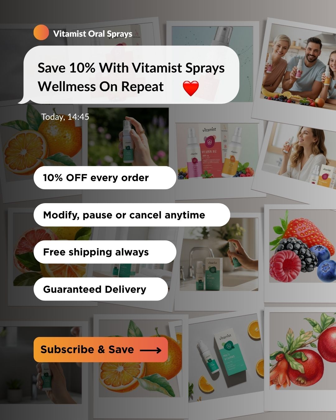 Vitamist oral sprays deliver nutrients through the soft tissues of the mouth for fast absorption. There are no tablets or capsules to swallow and no reliance on digestion—just a simple, convenient way to support your daily nutrition.
